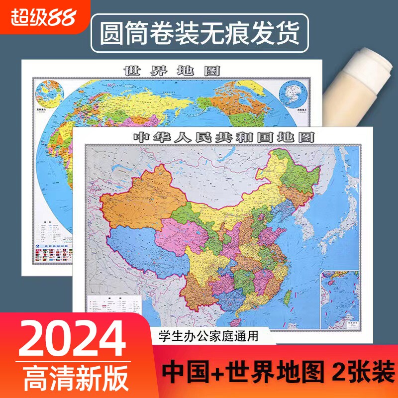 【卷筒发货无折痕 高清2张】2026年新版中国地图和世界地图学生专用版办公室家庭客厅挂图背景墙全国大尺寸墙贴挂画墙面装饰画