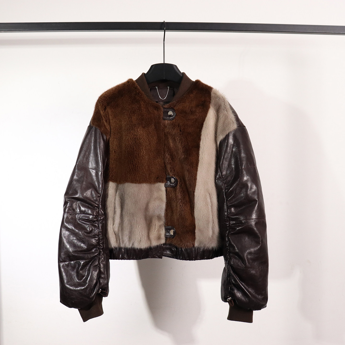 真皮拼接水貂毛撞色皮衣女款夹克羊皮外套洋气皮毛一体保暖鹅绒服