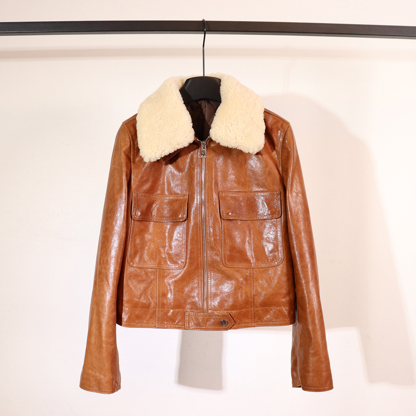 超短特小码男女款皮衣水洗植鞣绵羊皮外套 507工装牛仔款真皮夹克
