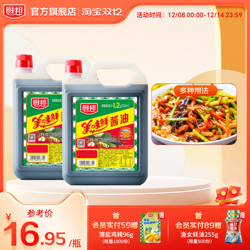 【秒杀】厨邦美味鲜酱油1.43L特级酱油厨房炒菜炖菜点蘸家用提鲜