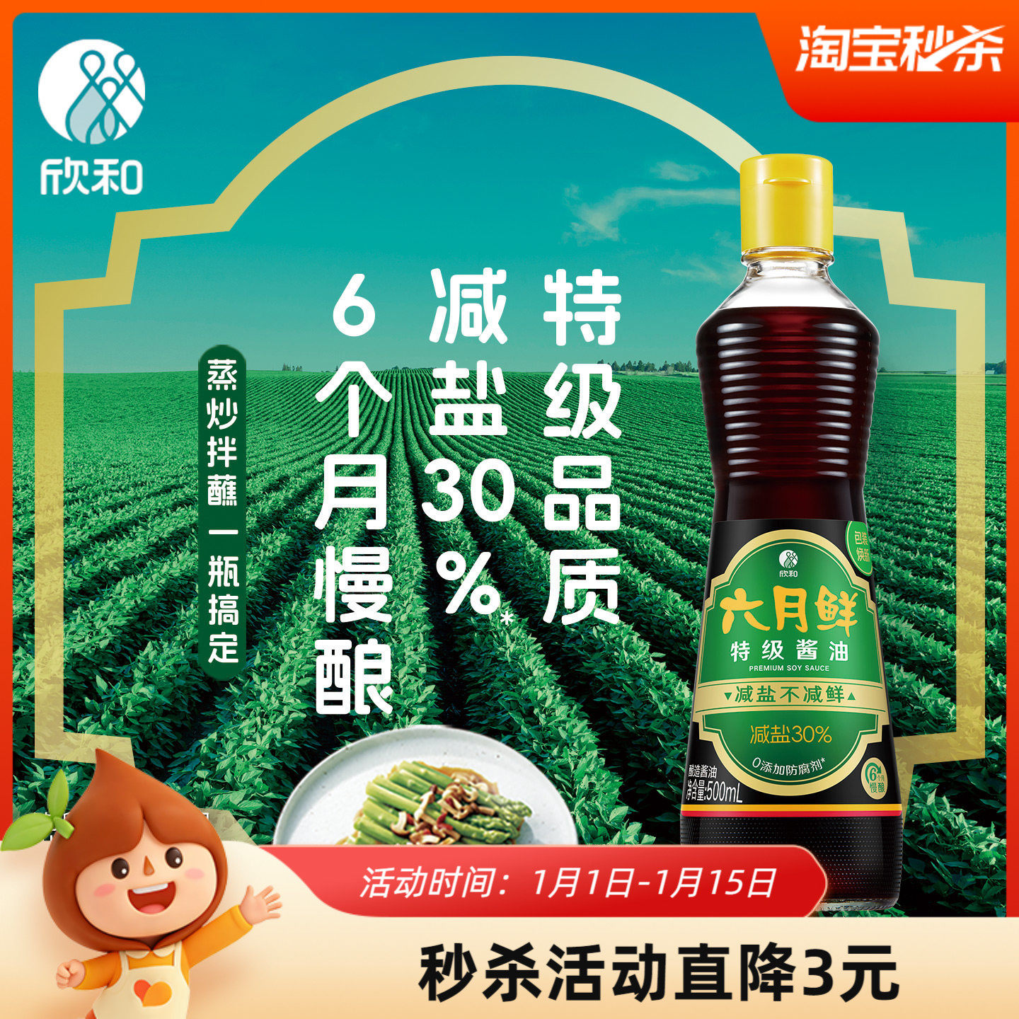 欣和六月鲜特级酱油500ml 减盐30% 凉拌炒菜鲜味黄豆酱油生抽家用