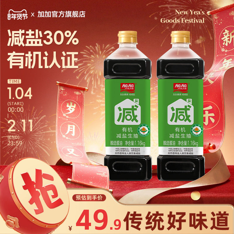 加加0添加有机减盐生抽1.16kg酿造酱油减盐35%酱油调料品特级酱油
