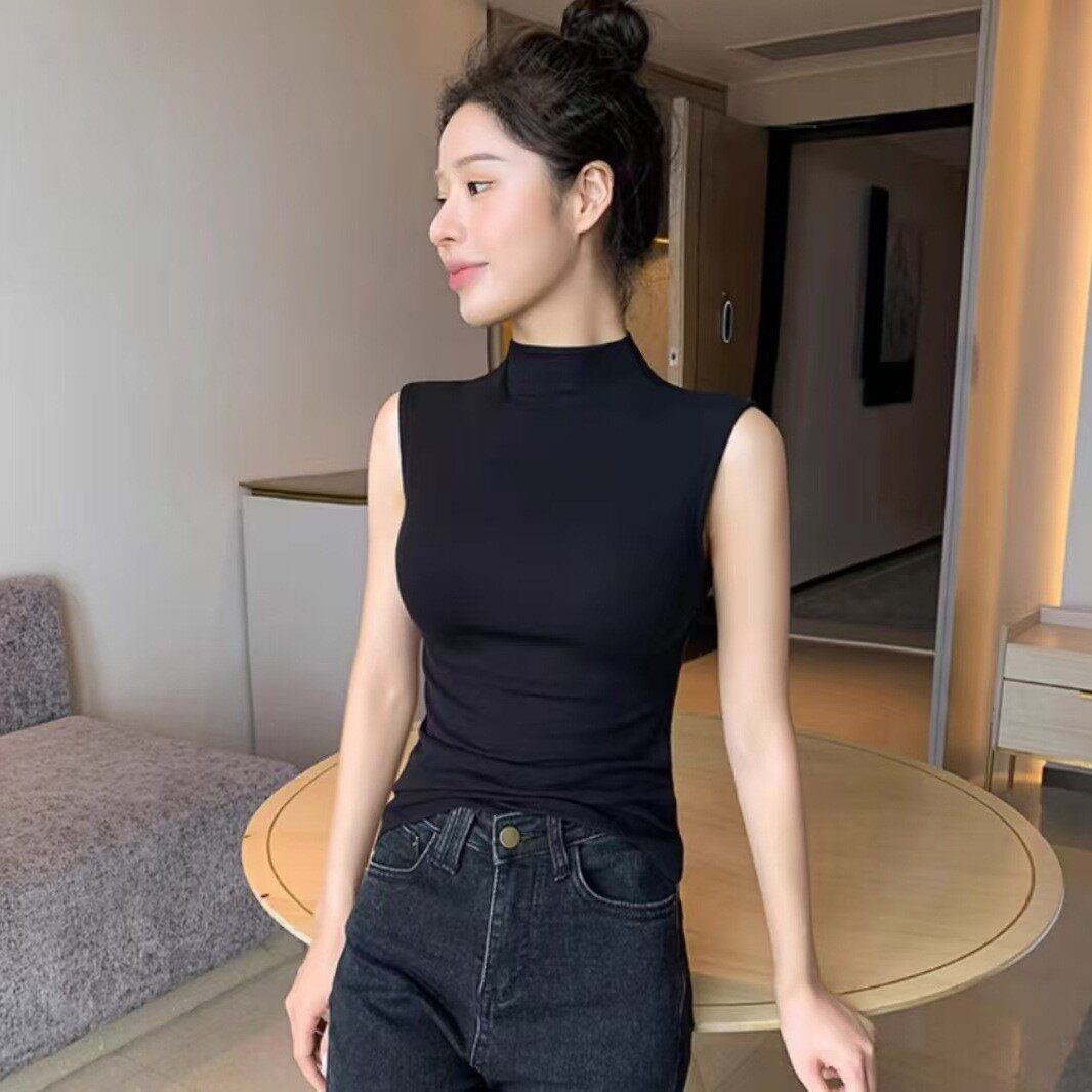 歌倍尚半高领无袖背心女2025早秋新款纯色遮副乳配西装的内搭上衣