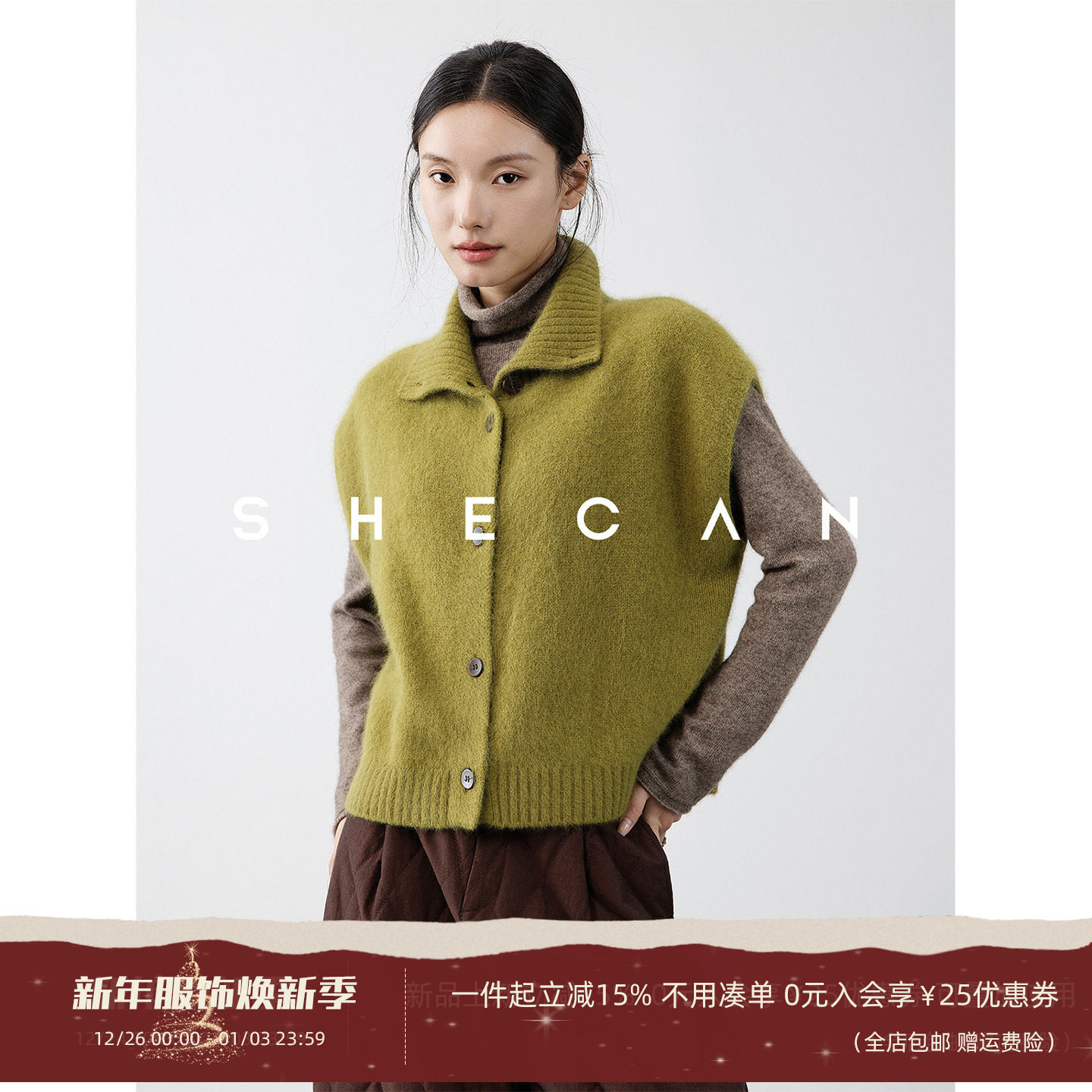 SHECAN【云寇】秋冬季叠穿神器绵羊毛马甲女高领无袖针织开衫上衣