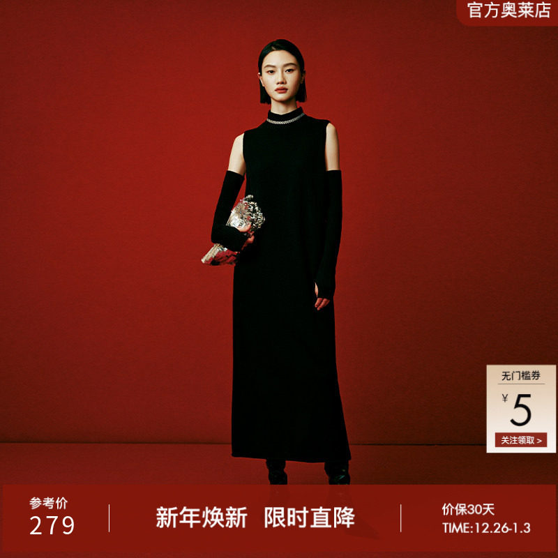 艾诺丝雅诗100%绵羊毛半高领无袖针织连衣裙女圣诞宴会冬31219880