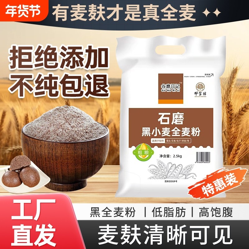 黑全麦粉5斤含麦麸无糖精家用馒头包子烘焙杂粮粉荞麦黑小麦面粉
