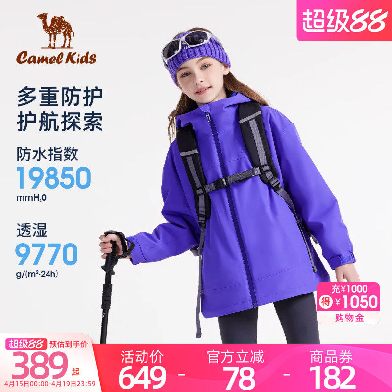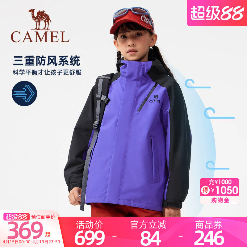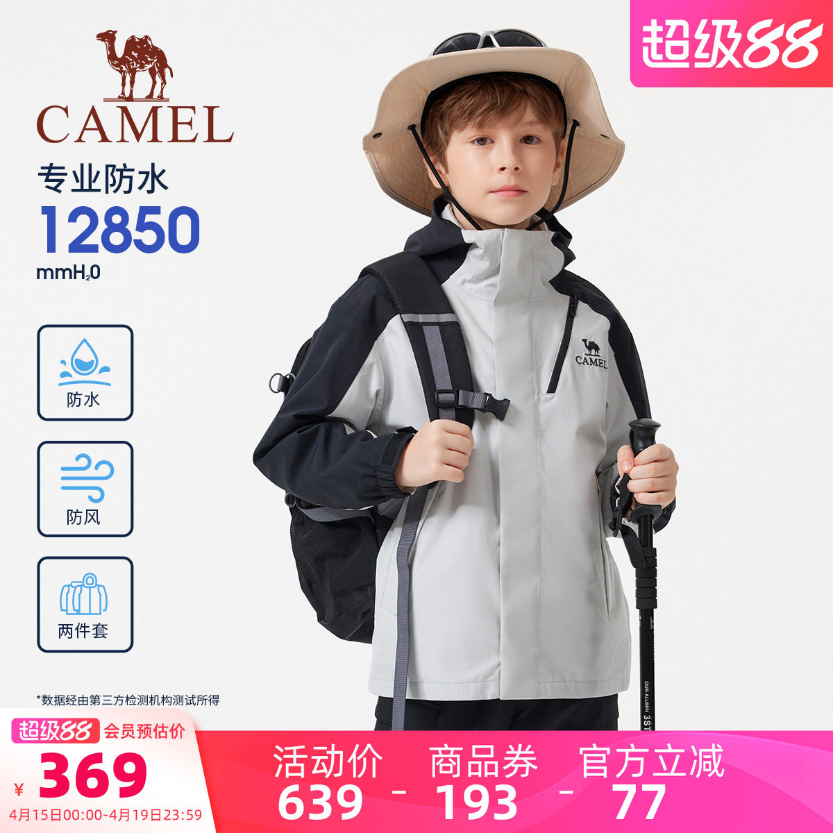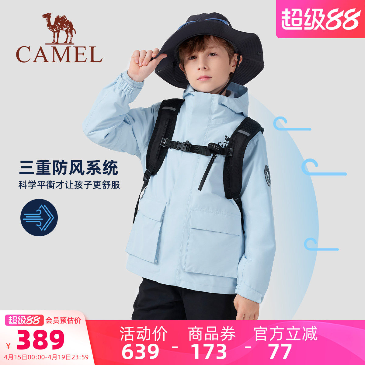 骆驼童装儿童冲锋衣三合一户外保暖女童滑雪服加绒防水男大童外套