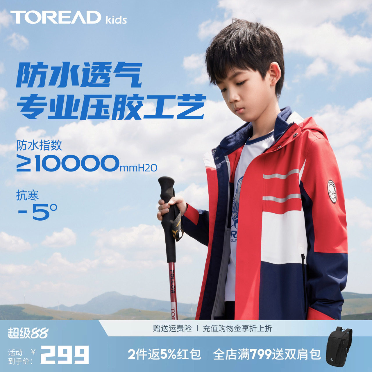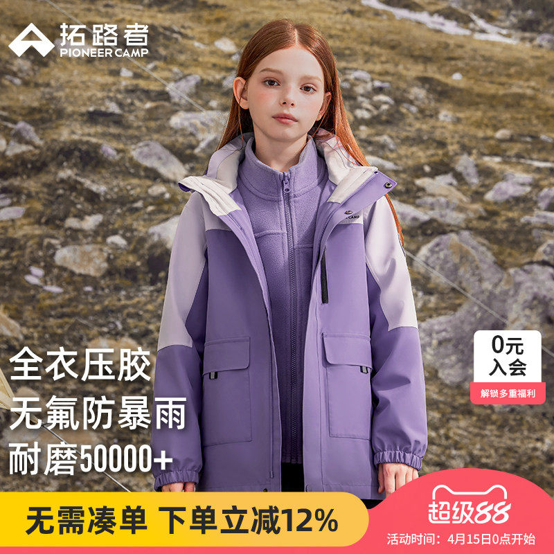 拓路者儿童专业户外防水冲锋衣男童三合一女童可拆卸加绒大童外套