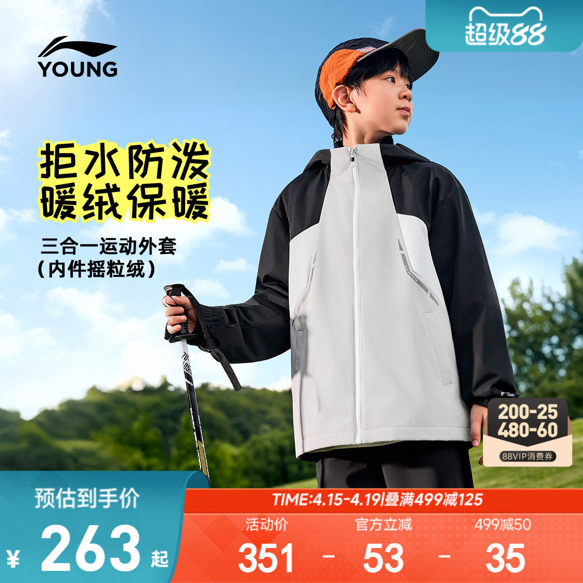 商场同款|李宁儿童三合一加绒摇粒绒外套冲锋风衣男童装大童冬装