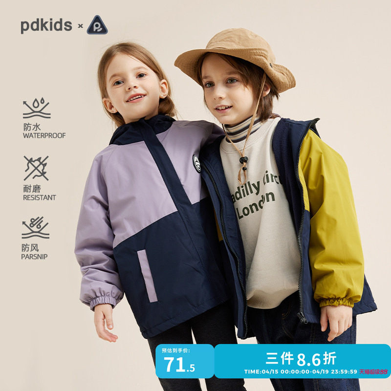 [三防]男童冲锋衣宝宝秋冬连帽春装小童加绒衣服潮儿童三合一外套