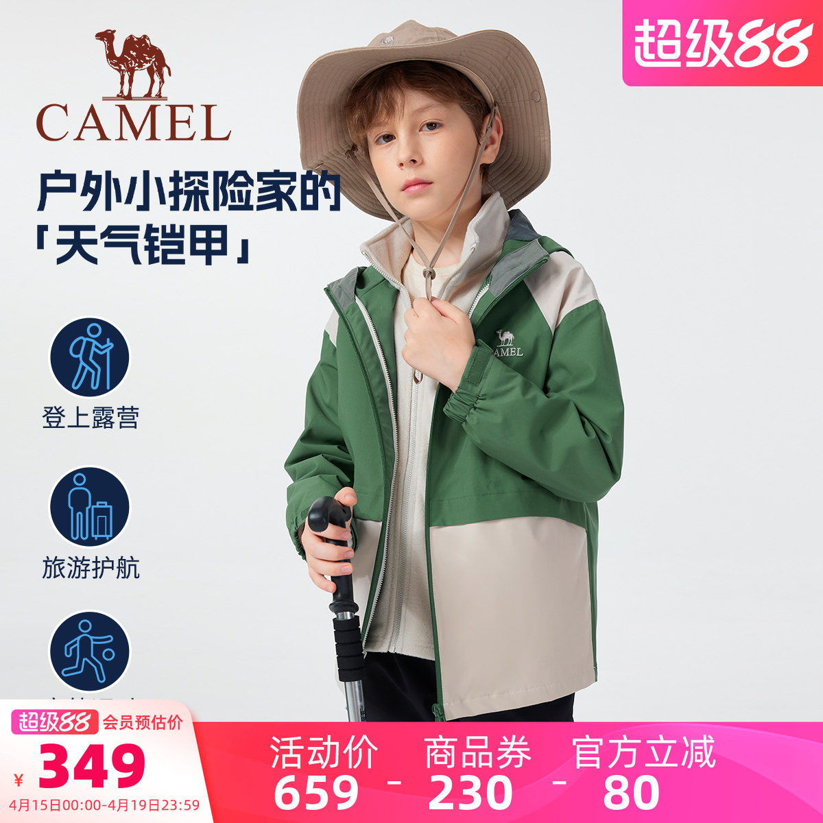 【小铠甲】骆驼儿童冲锋衣三合一防水户外女童滑雪服男童加绒外套