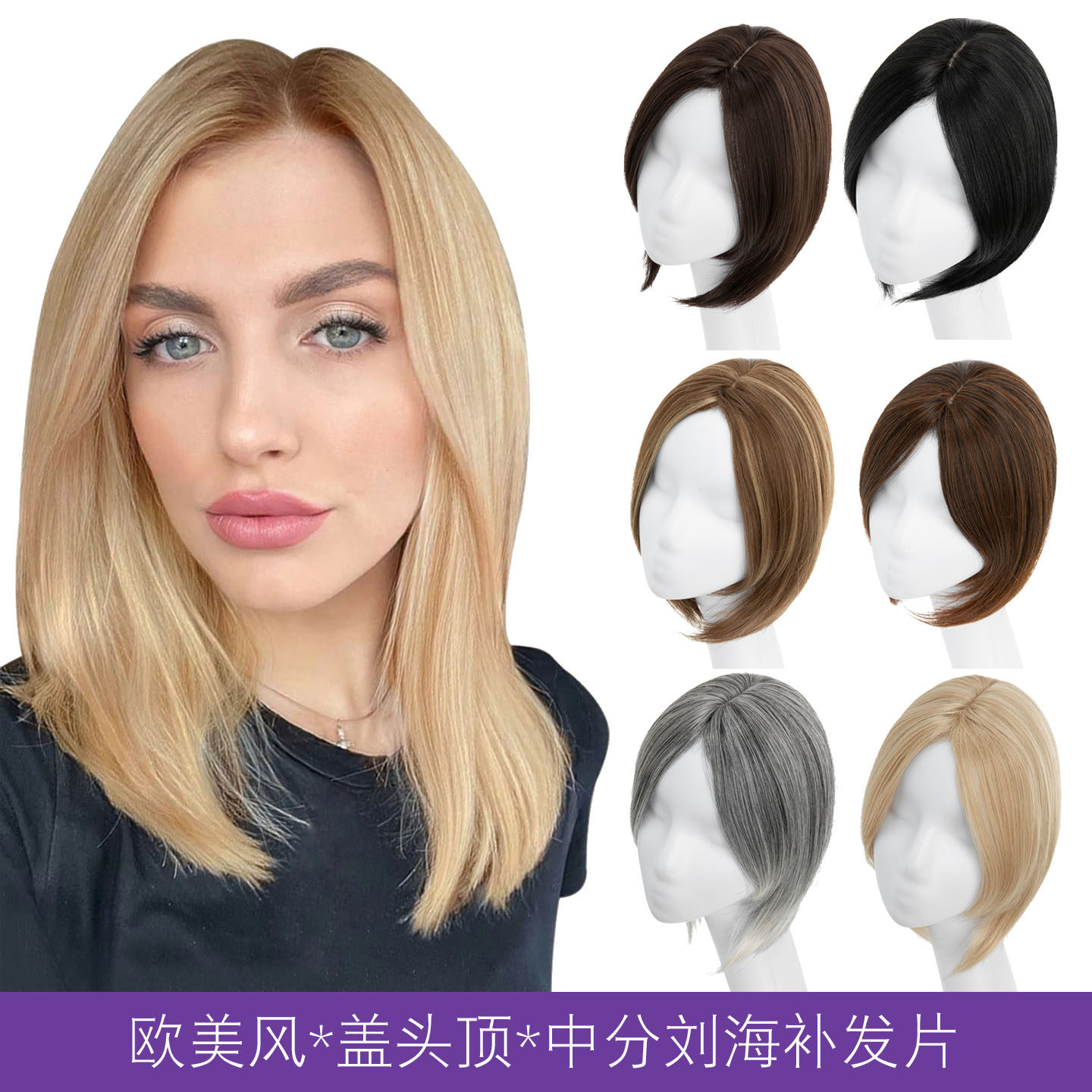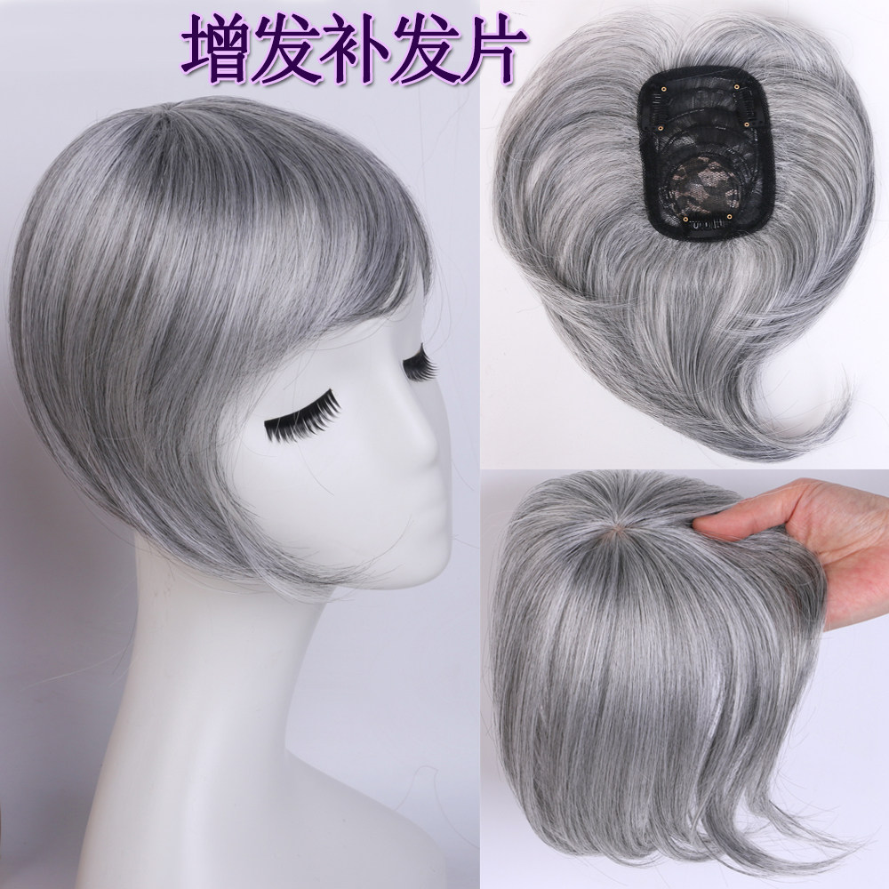 欧美假发女中分刘海盖头顶假发补发块蓬松自然遮盖白发发顶补发片