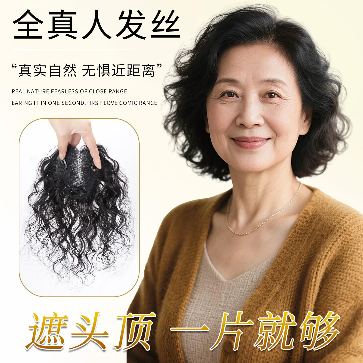 假发片女头顶增发量蓬松遮盖白发羊毛卷无痕轻薄中老年假发补发片