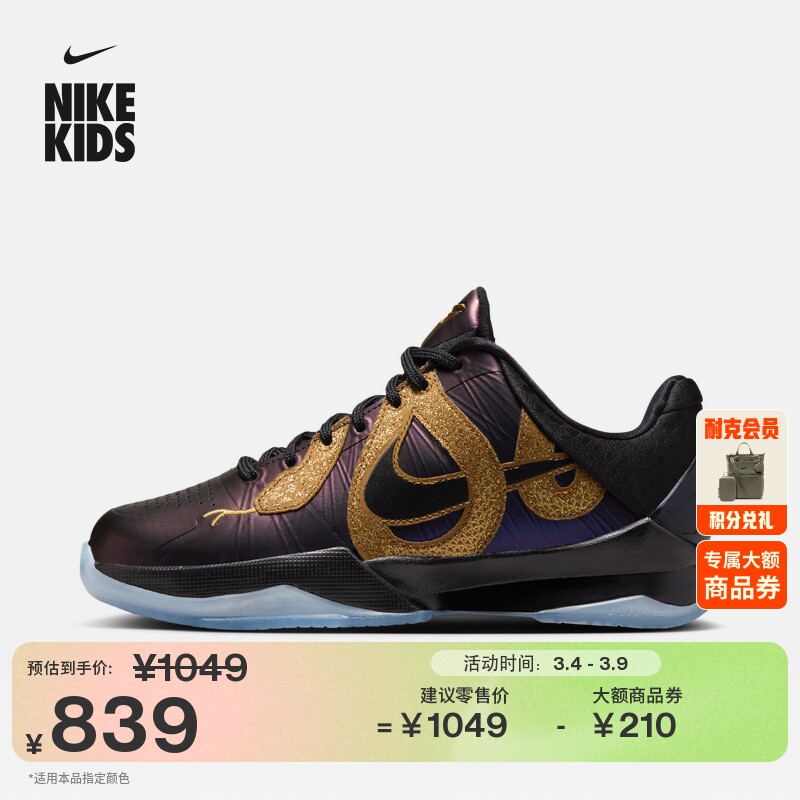 耐克曼巴之年科比5大童透气篮球鞋冬季男女童NIKE KOBE 5 HM3753