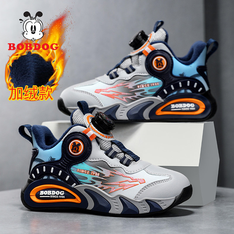 巴布豆男童鞋冬季新款二棉皮面篮球鞋百搭保暖鞋子加绒儿童运动鞋