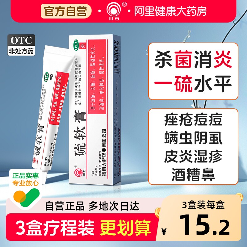硫磺软膏正品官方旗舰店硫磺膏抑菌止痒百分之10去阴虱疥疮专用