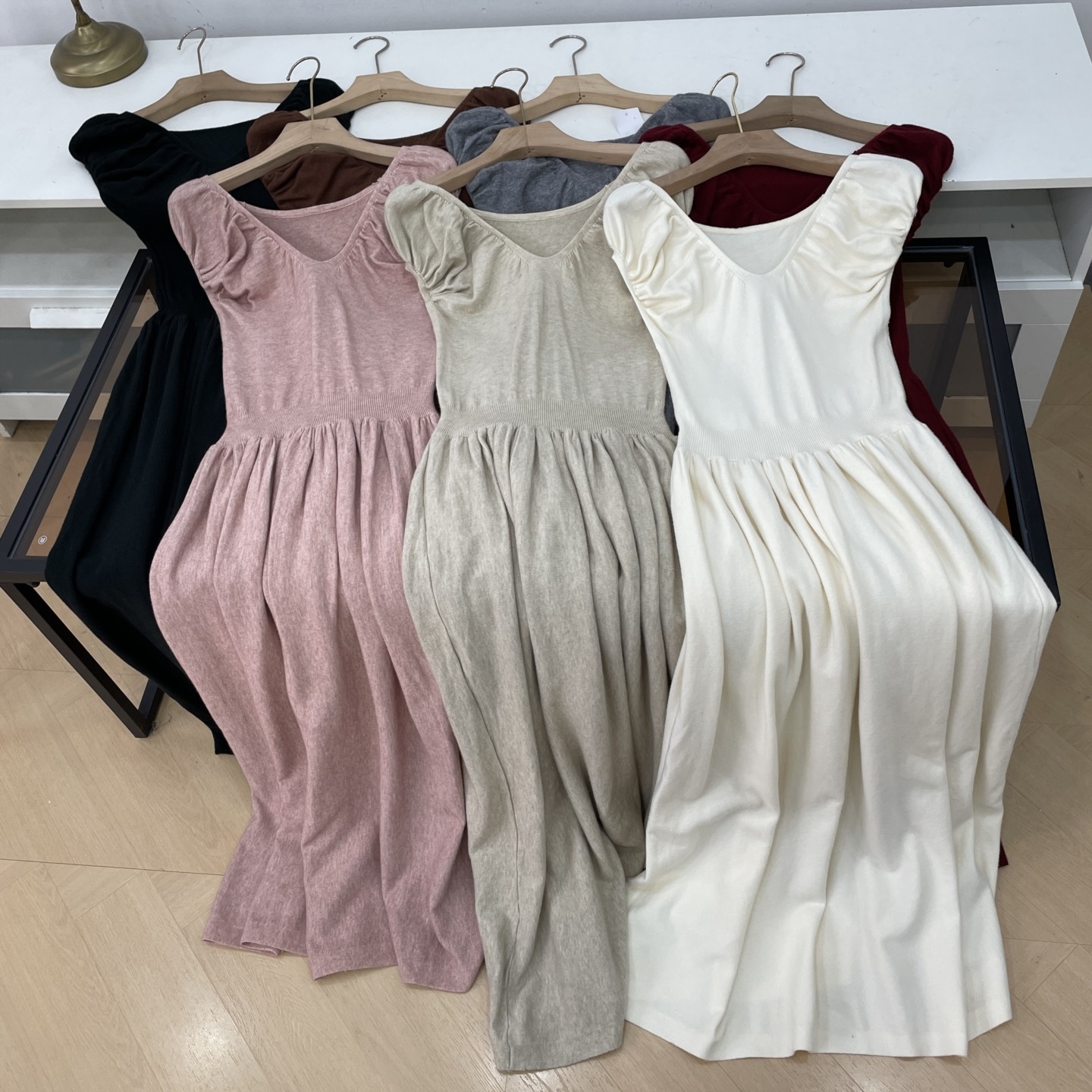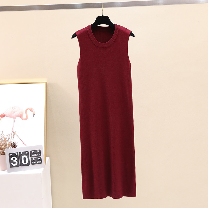 2M-4韩版简约长款圆领无袖修身显瘦高弹性纯色针织连衣裙Z25-5