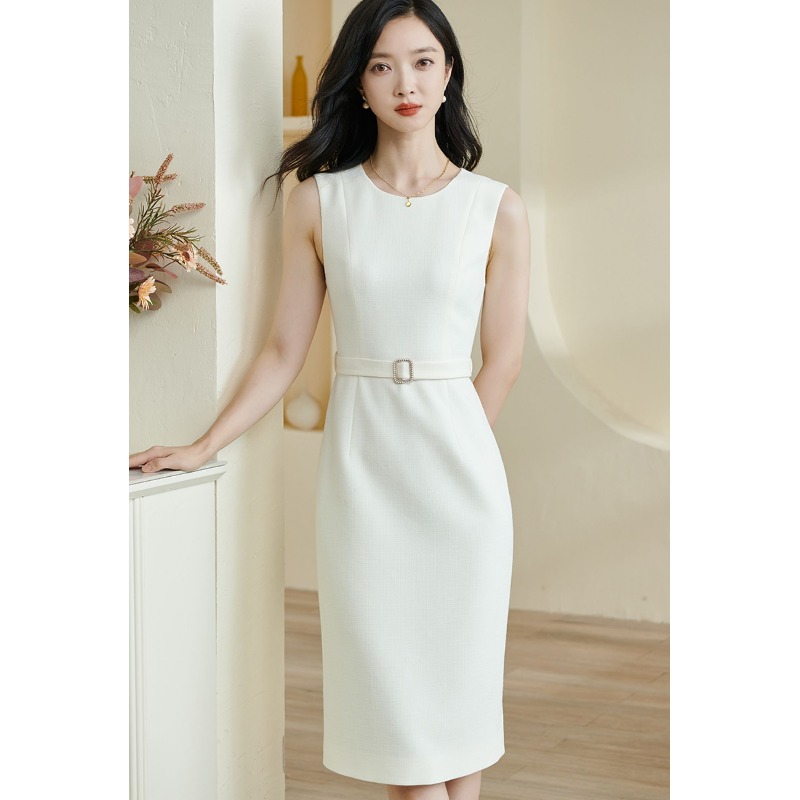 罗衣简约纯色通勤无袖连衣裙女春轻职场修身包臀打底中长裙01790