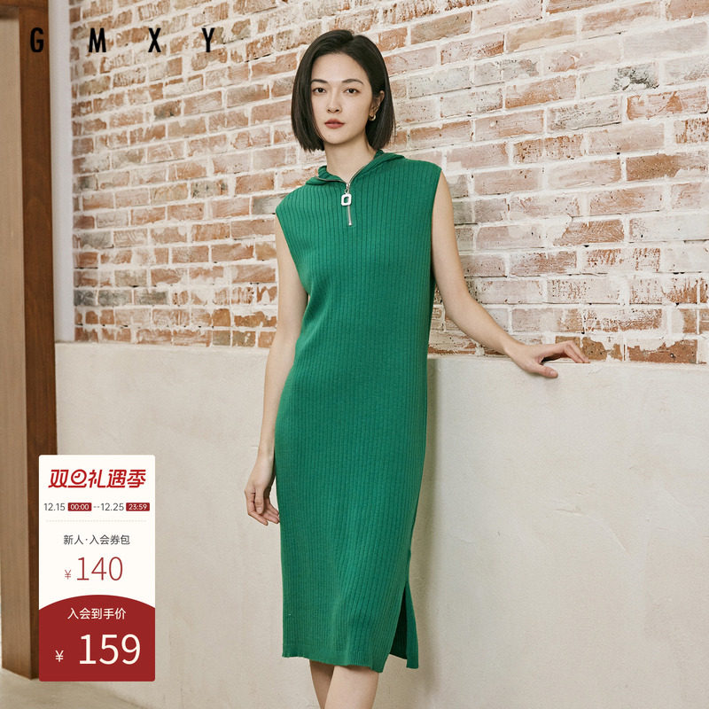 纯色显瘦修身收腰气质感圆领无袖背心裙针织长裙新款女连衣裙M364