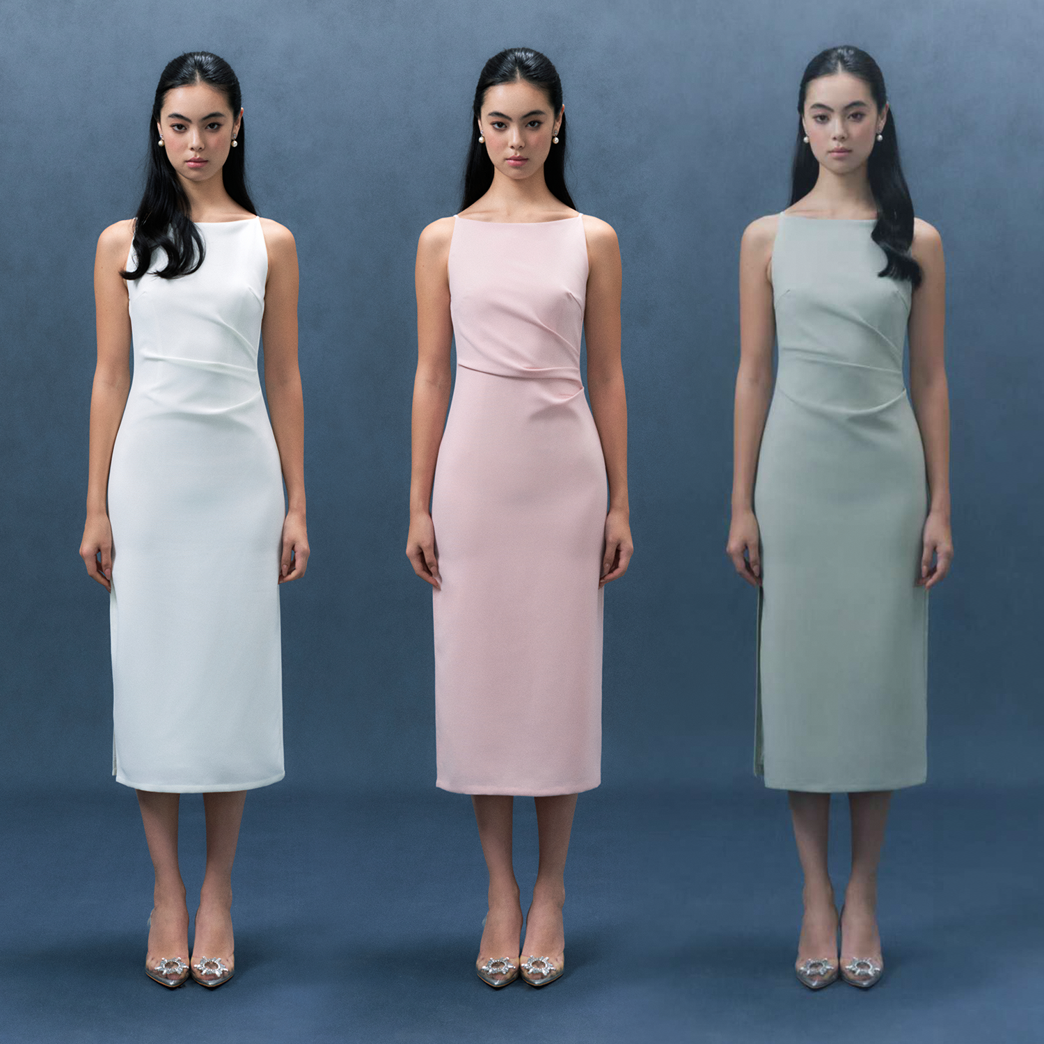 纯色显瘦修身垂坠缎面极简收腰长裙圆领无袖背心裙优雅连衣裙L158