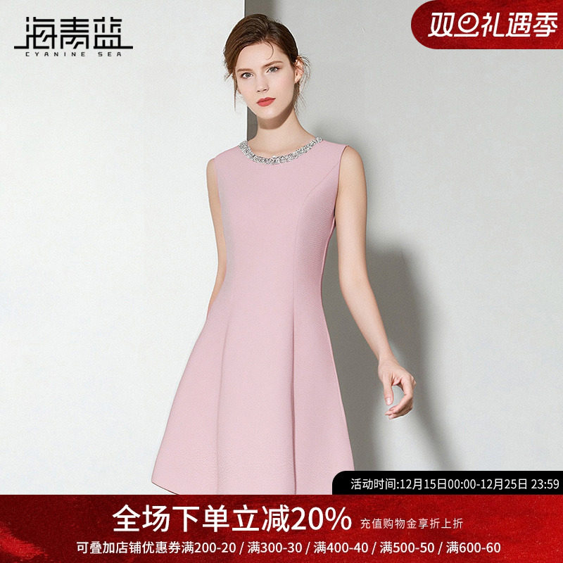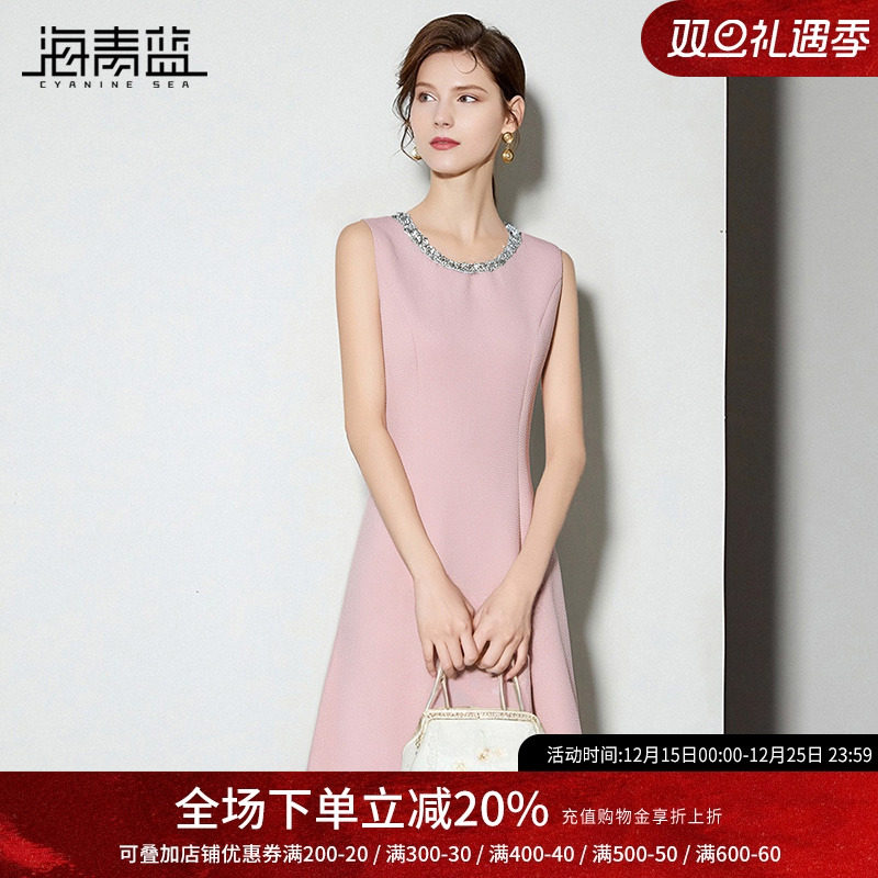 海青蓝 无袖连衣裙2025年秋冬新款纯色女装高级修身中长款背带裙