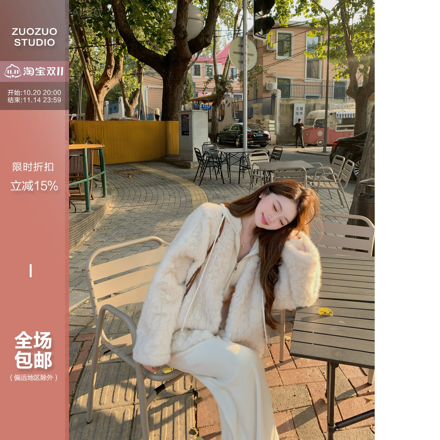 Huangzuozuo佐佐家小个子 环保毛仿皮草毛绒外套秋冬季女短款大衣