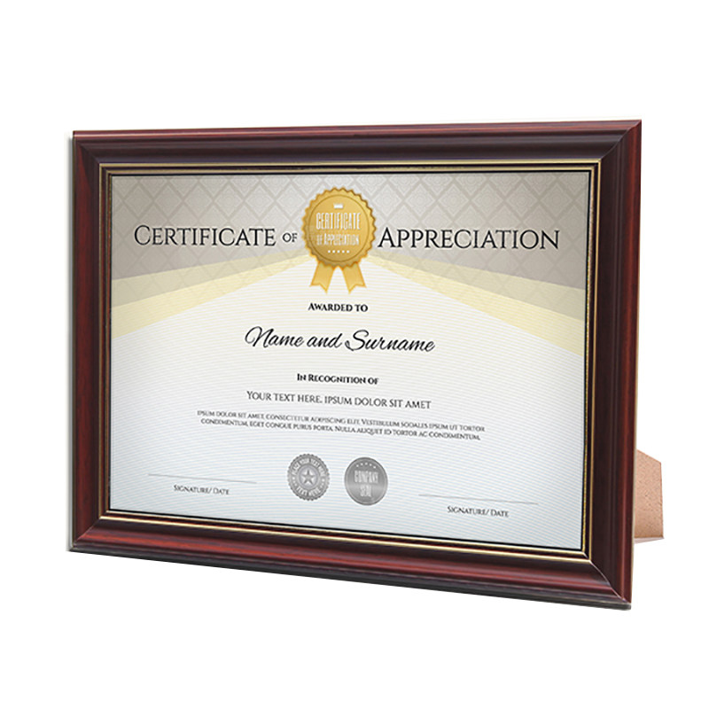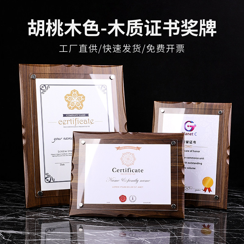 高档胡桃木获奖荣誉证书框展示架授权书裱框架8寸实木a4相框摆台