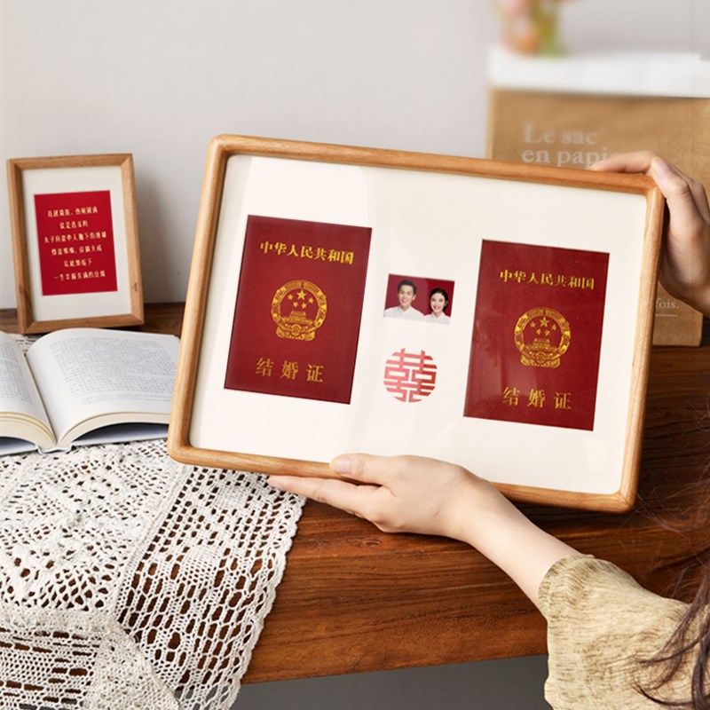 周年纪念框实木结婚证喜字照片裱框收藏放结婚登记本的A4相框摆台