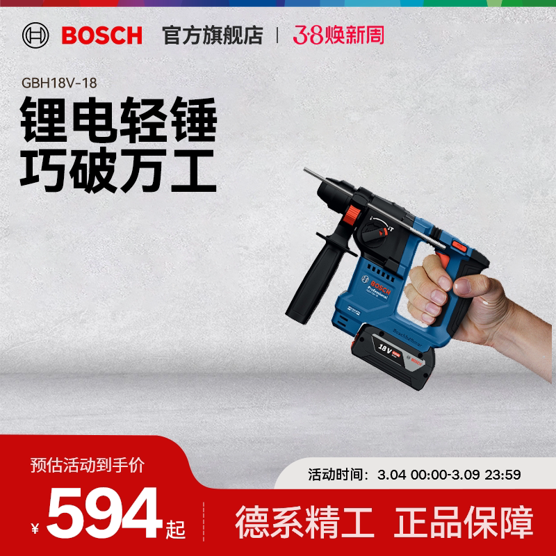 博世电锤多功能冲击钻工业级混凝土锂电智能电锤GBH 18V-18