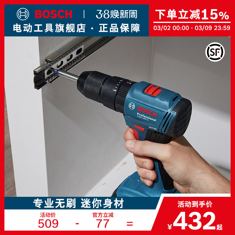 博世锂电无刷手电钻冲击钻多功能电动螺丝刀充电式电动工具GSB185