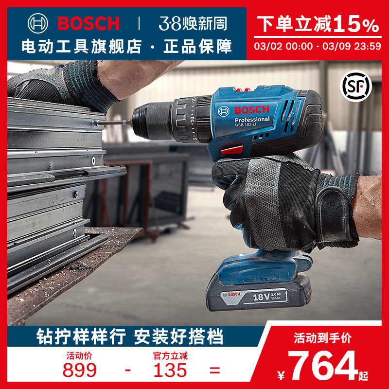 博世锂电电钻手电枪钻冲击钻多功能电动螺丝刀充电式工具GSB183LI