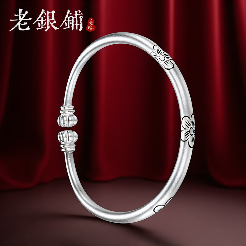 顺庆银楼S9999纯银手镯女妈妈款繁花足银新中式开口送妈妈礼物