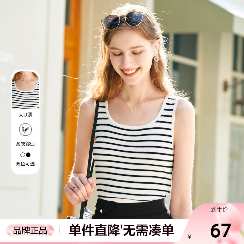 betu百图U领黑白条纹针织背心女2026年春夏新款内搭外穿打底衫