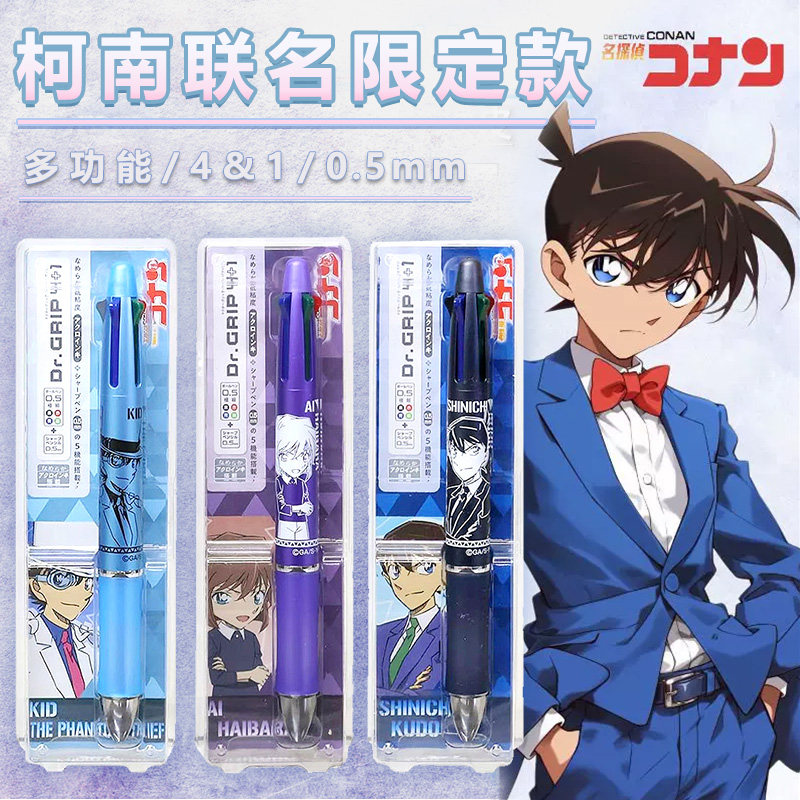 爱好名侦探柯南联名按动中性笔st笔头速干顺滑按动刷题笔黑笔学生专用笔0.5按压式水笔碳素笔怪盗基德周边