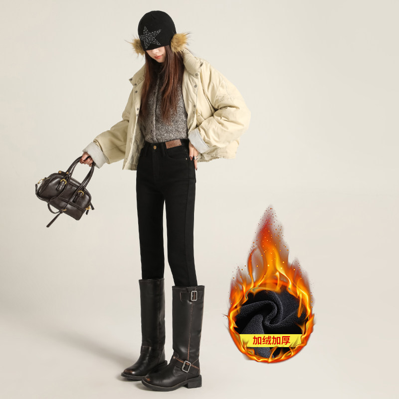 - 加绒弹性牛仔裤女