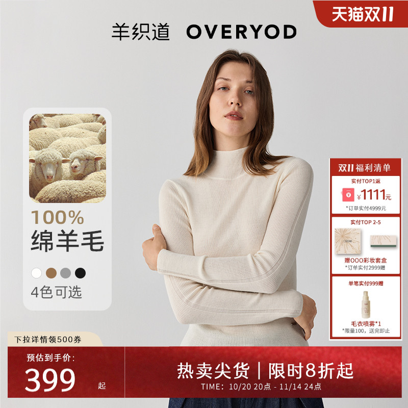 【100%绵羊毛】羊织道树莓打底衫春秋上衣针织衫内搭白色毛衣女