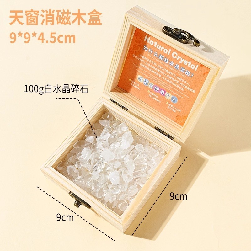 天然白水晶消磁石手链净化盒粉紫黑曜石碎石盒子御守盐水晶石摆件