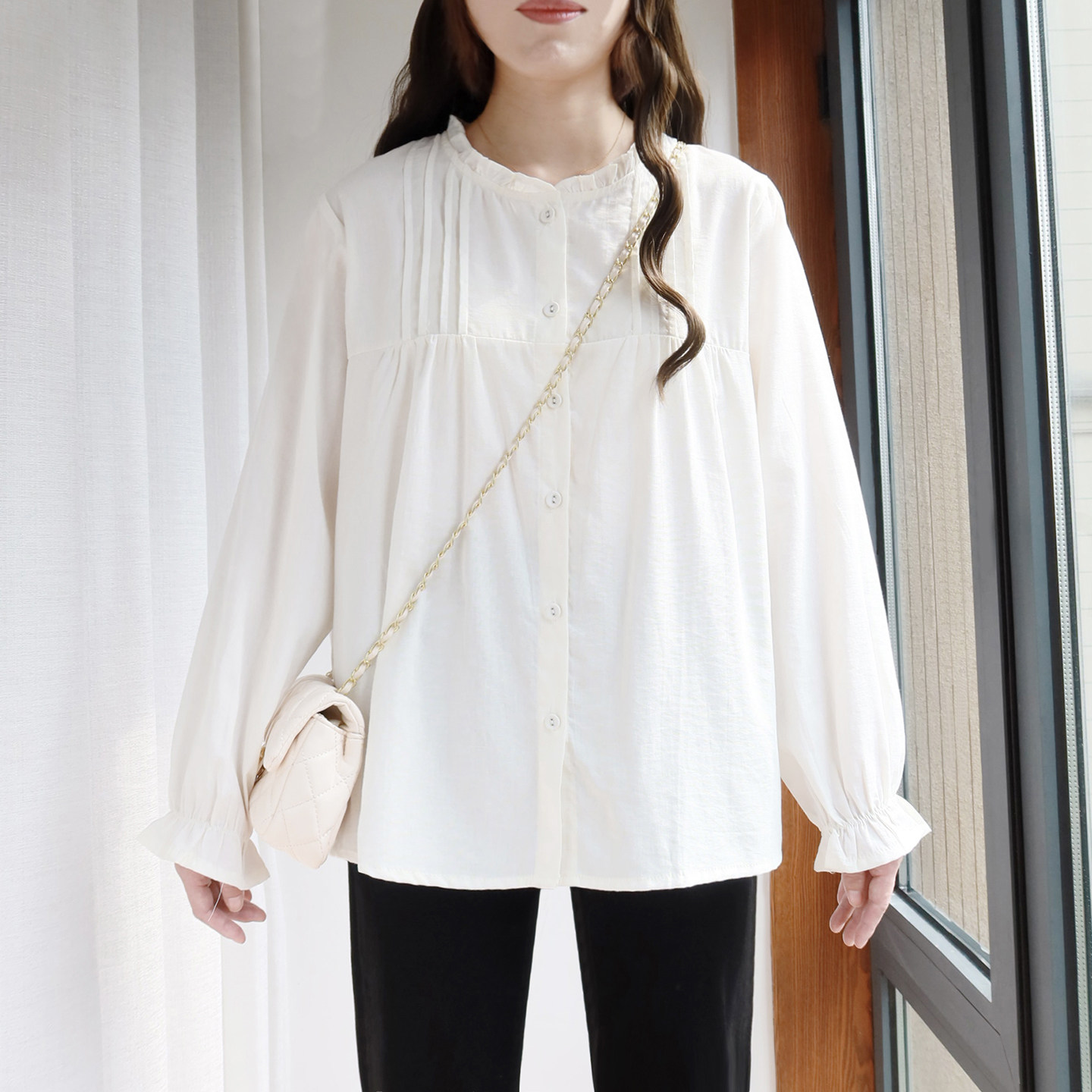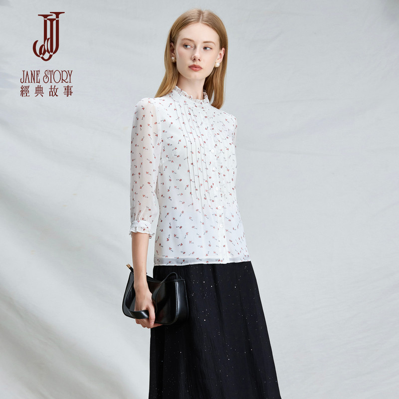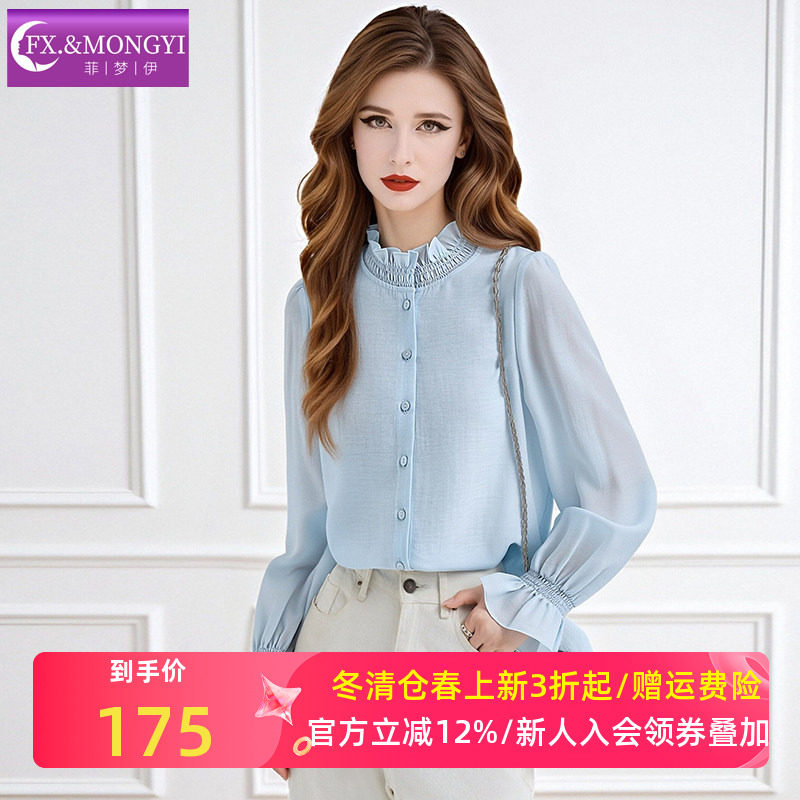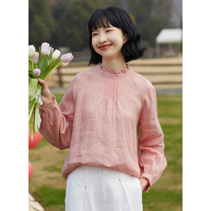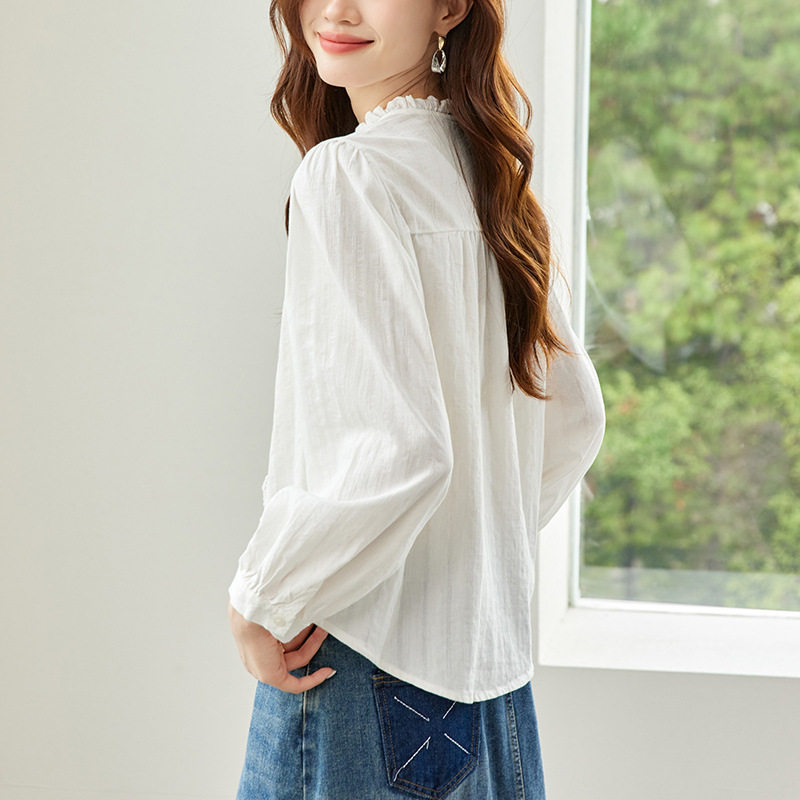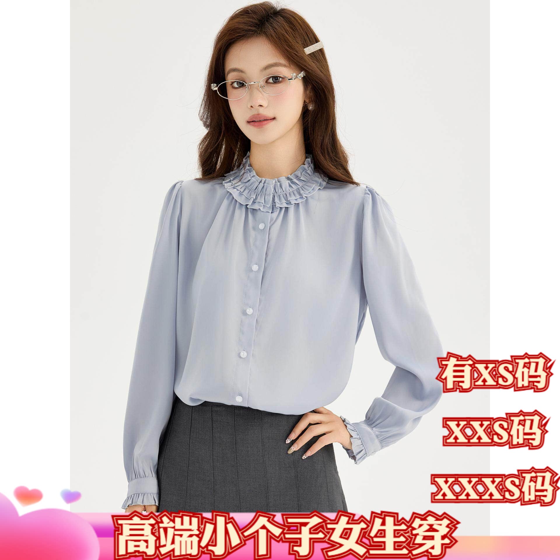 - 立领荷叶边衬衫