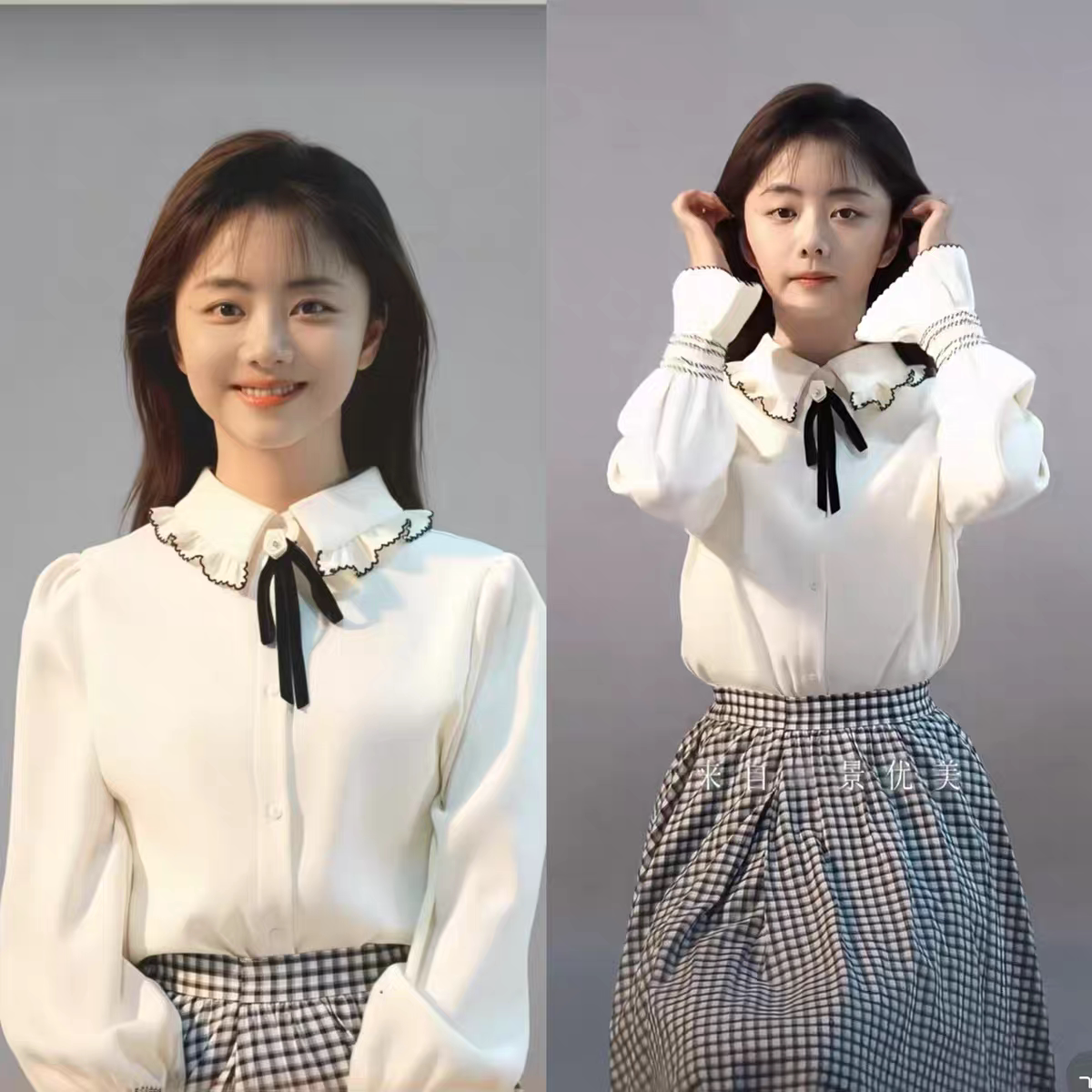 - 格子衬衫女学生长袖小清新