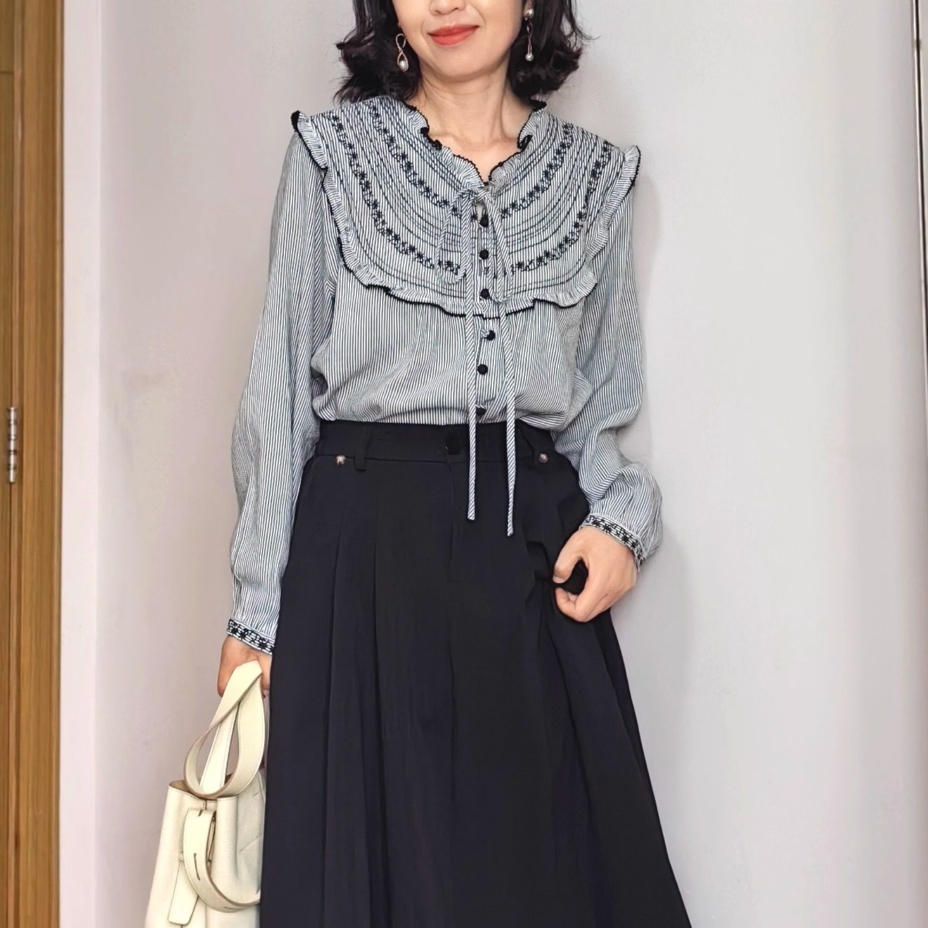 - 文艺条纹衬衫