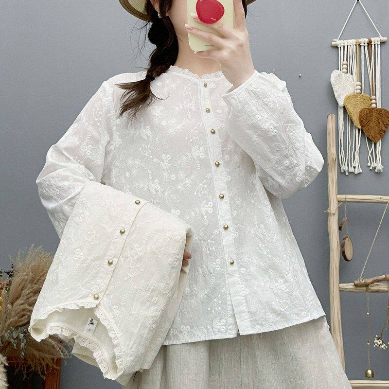 - 棉麻白衬衫