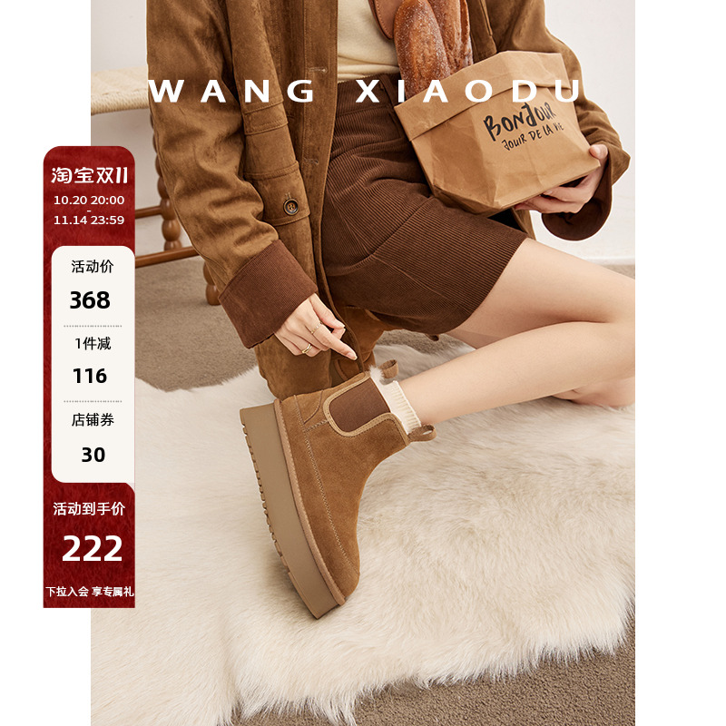 【王小毒】暖冬壁炉●羊皮毛一体雪地靴女厚底冬季保暖切尔西短靴
