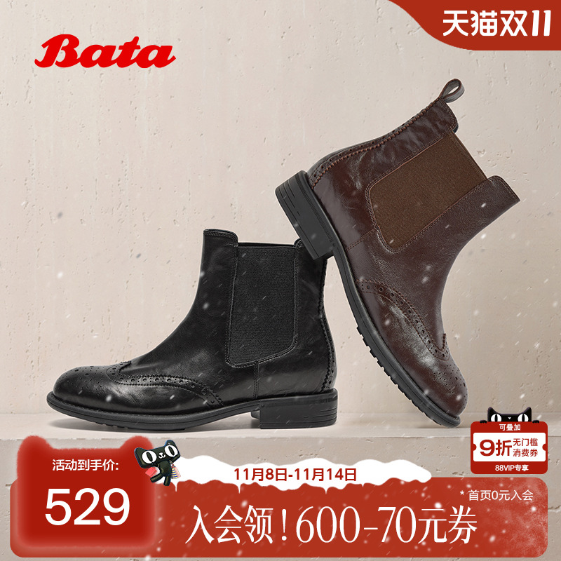 Bata切尔西靴女2025冬季新款英伦风切尔西粗跟通勤短筒靴68151DD5