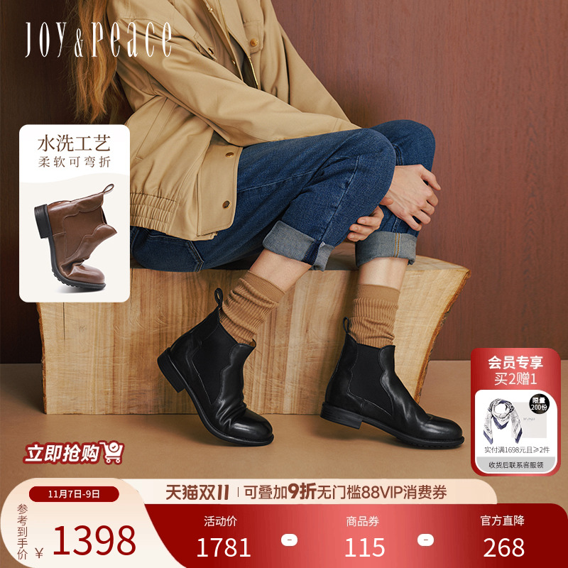 董洁同款真美诗自由诗新款柔软水洗牛皮英伦风经典切尔西靴短靴女