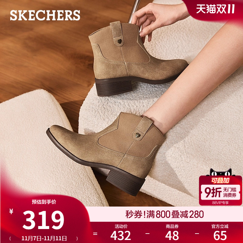 斯凯奇切尔西靴2025秋冬新款女粗跟厚底时尚靴尖头短靴英伦风靴子