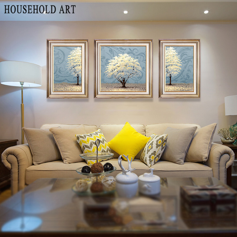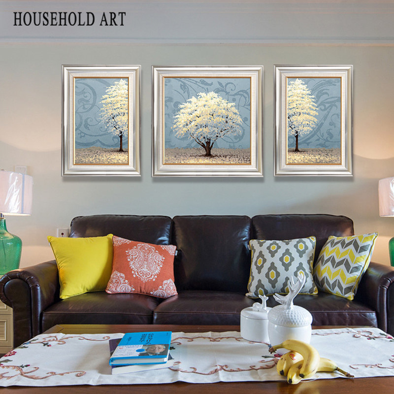 简美餐厅素雅幸福树美式乡村卧室床头清新挂M画美式客厅三联装饰