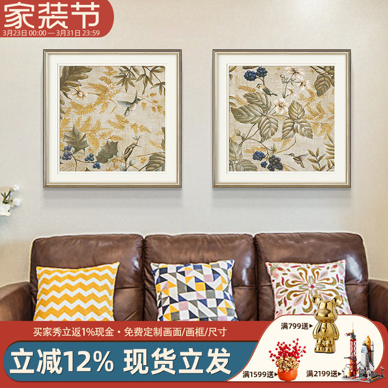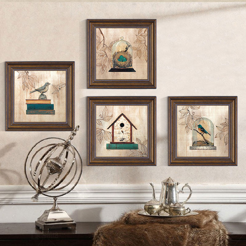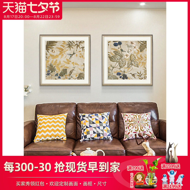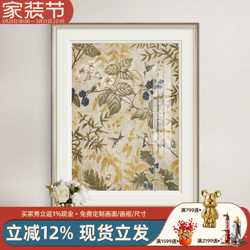 美式乡村复古花鸟植物p装饰画客厅沙发背景墙卧室玄关过道轻奢挂