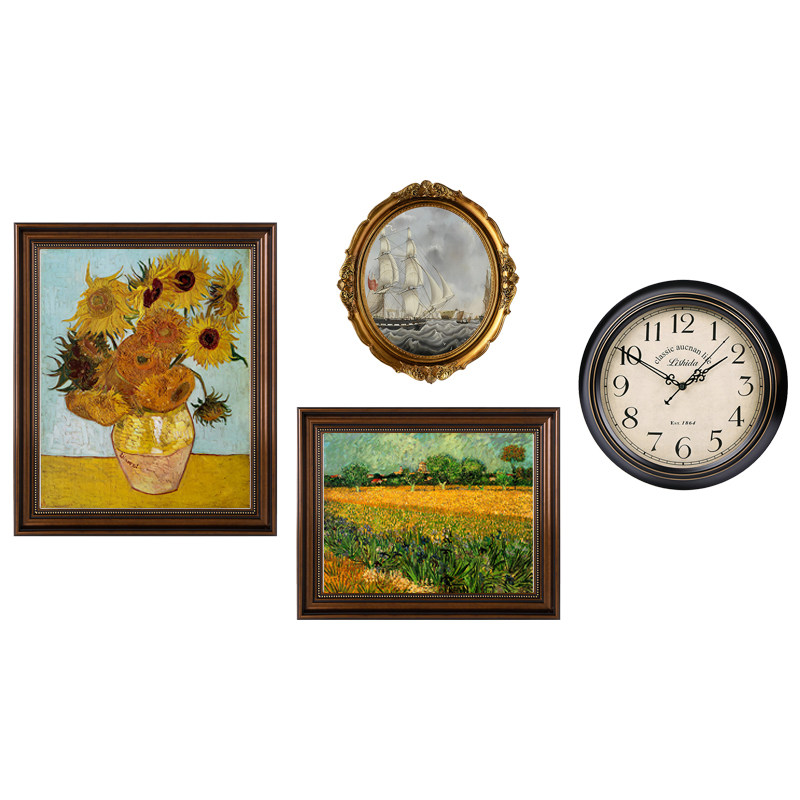 客厅装饰画沙发背景墙挂画复古风格墙画法式文P艺壁画美式乡村装