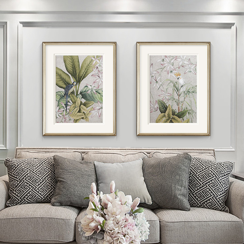 速壹现代美式轻奢客厅装饰画简美壁画法式田园乡村兰花鸟植物挂画