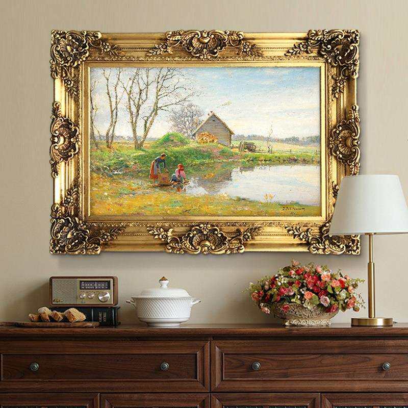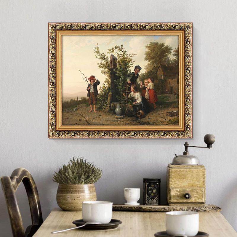 世界名画乡村人物装饰画美式餐厅客厅挂画高级感古典风景欧式油画